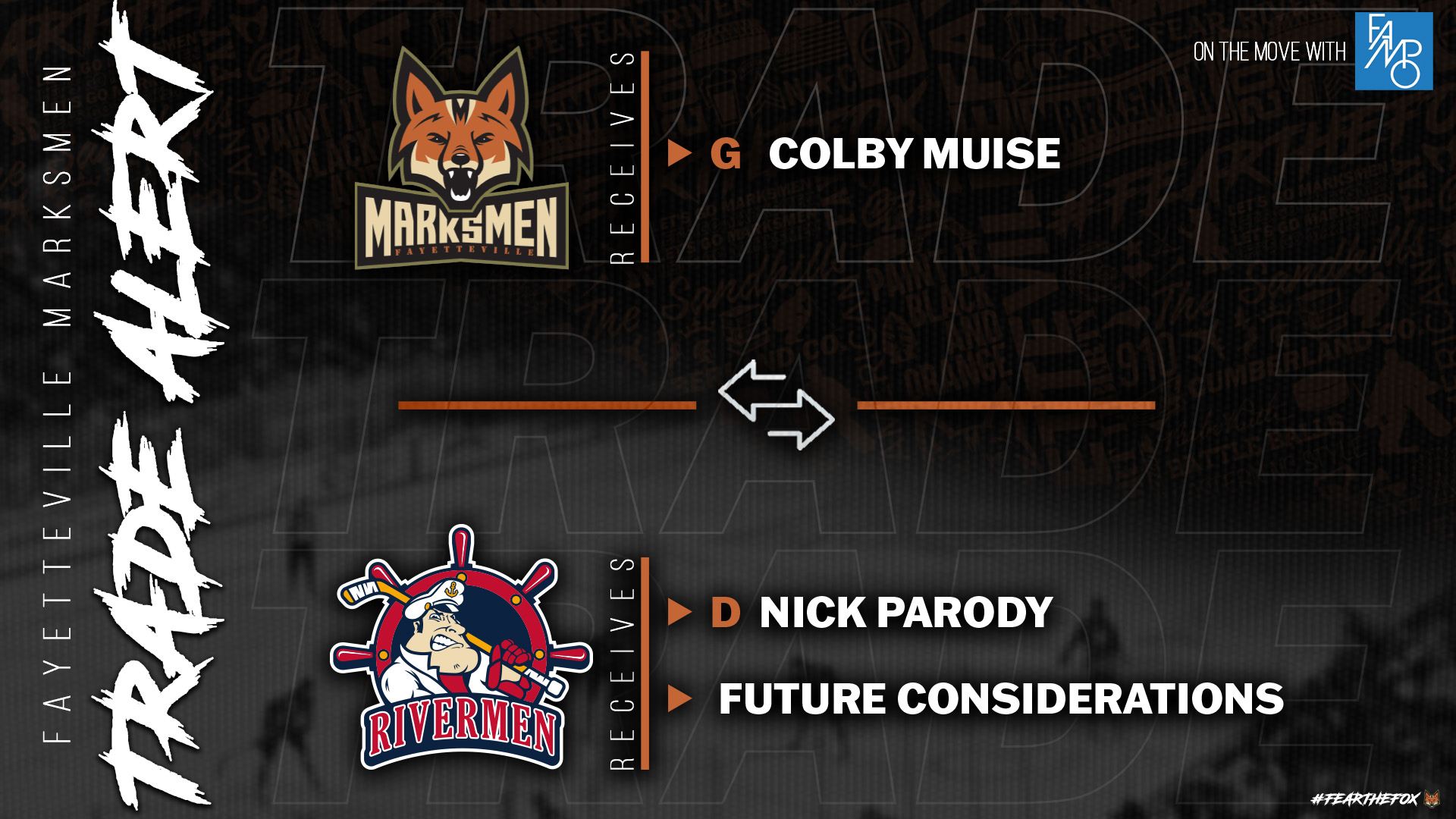 FAYETTEVILLE, N.C. – The Fayetteville Marksmen, proud members of the SPHL, have acquired Colby Muise in exchange for Defenseman, Nick Parody and Future Considerations.