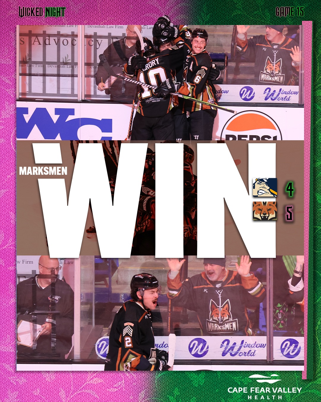 FAYETTEVILLE, N.C. – The Fayetteville Marksmen, proud members of the SPHL, defeated the Peoria Rivermen 5-4 on Friday night.