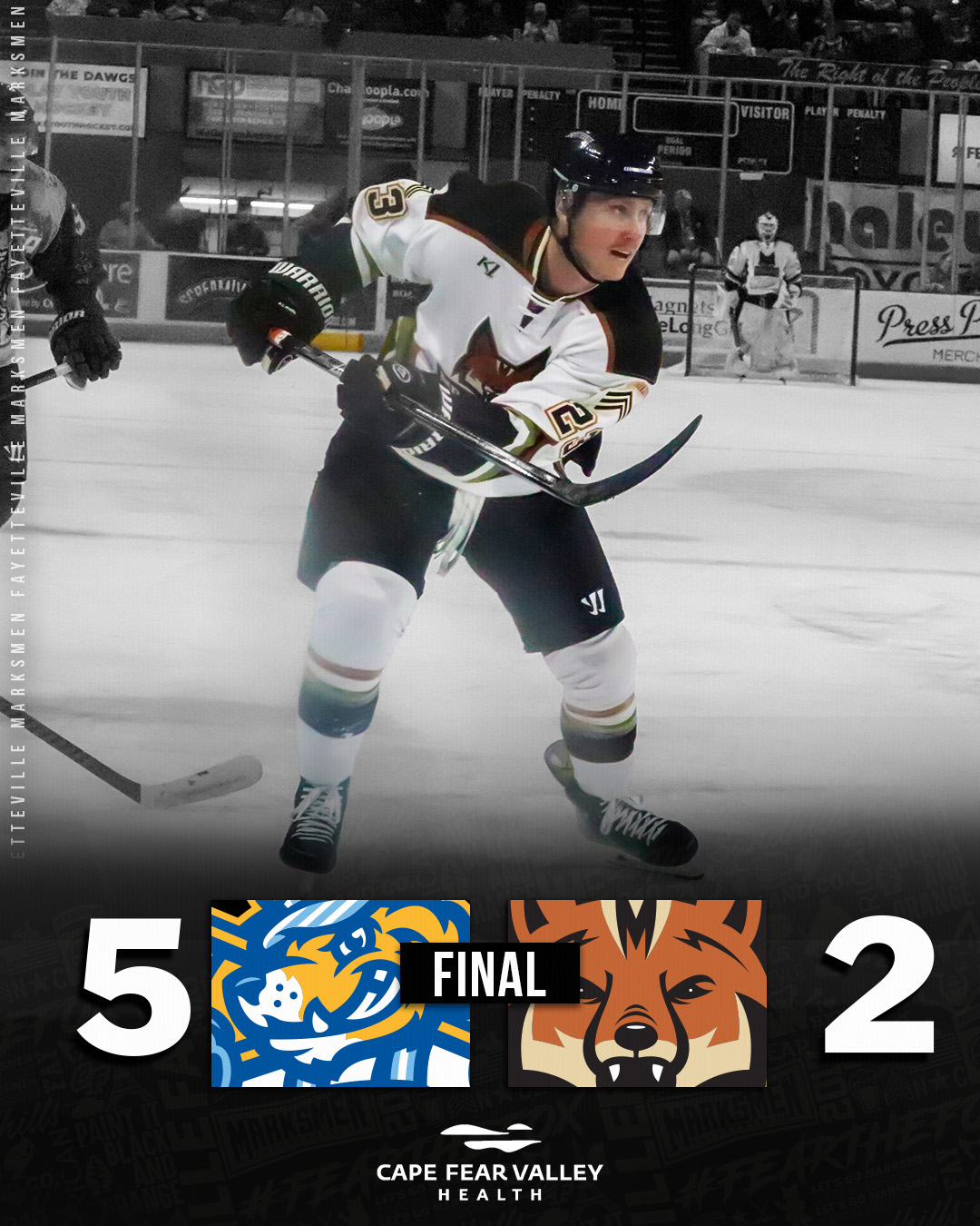 ROANOKE, Va. – The Fayetteville Marksmen, proud members of the SPHL, fell 5-2 to the Roanoke Rail Yard Dawgs on Wednesday night.