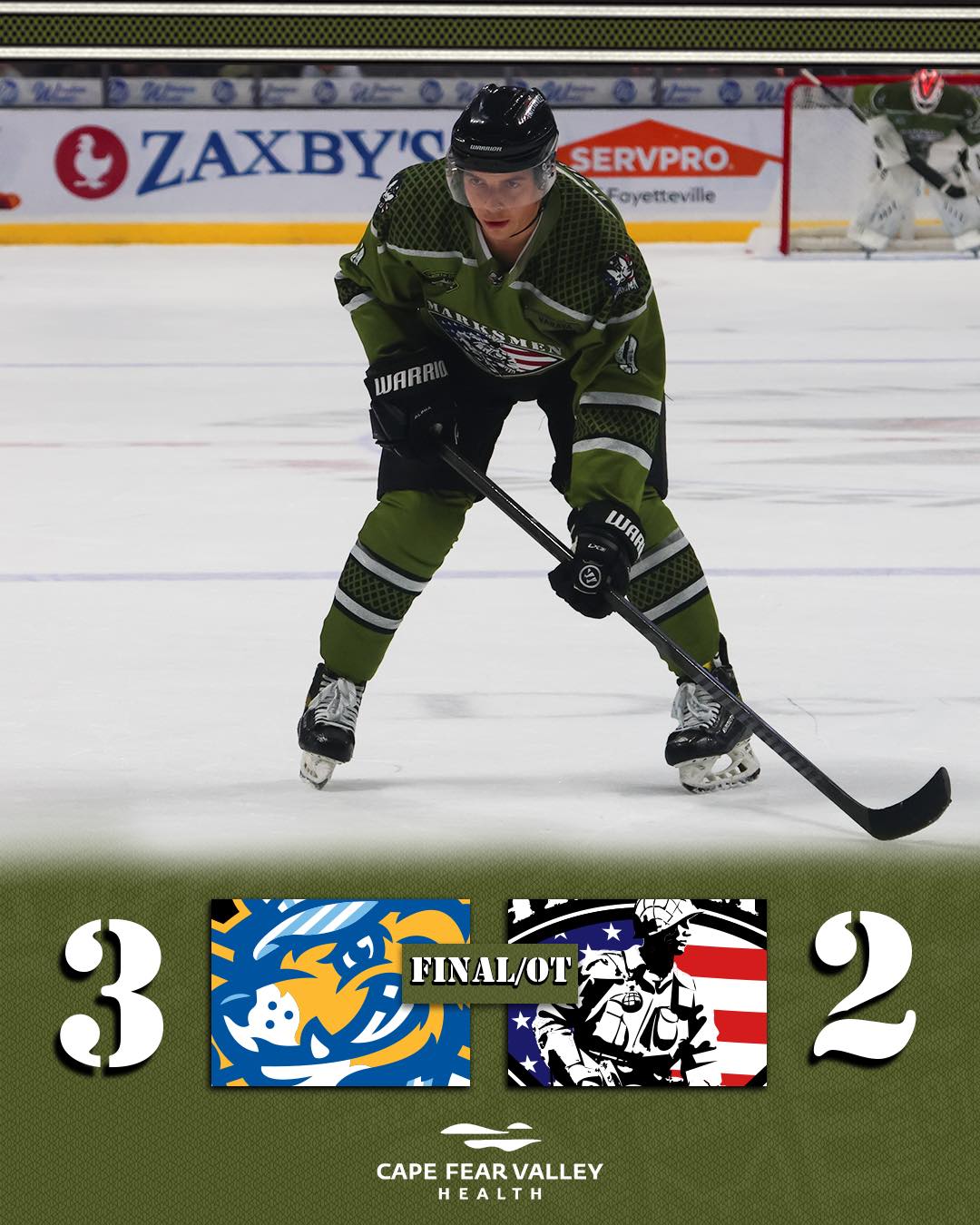 FAYETTEVILLE, N.C. – The Fayetteville Marksmen, proud members of the SPHL, fell to the Roanoke Rail Yard Dawgs 3-2 in overtime on Sunday.