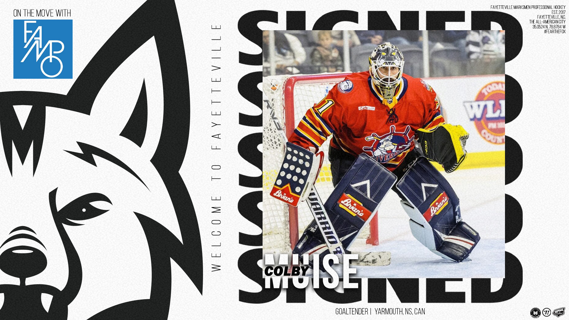 FAYETTEVILLE, N.C. – The Fayetteville Marksmen, proud members of the SPHL, announced Wednesday the signing of goaltender Colby Muise for the 2025-26 season.