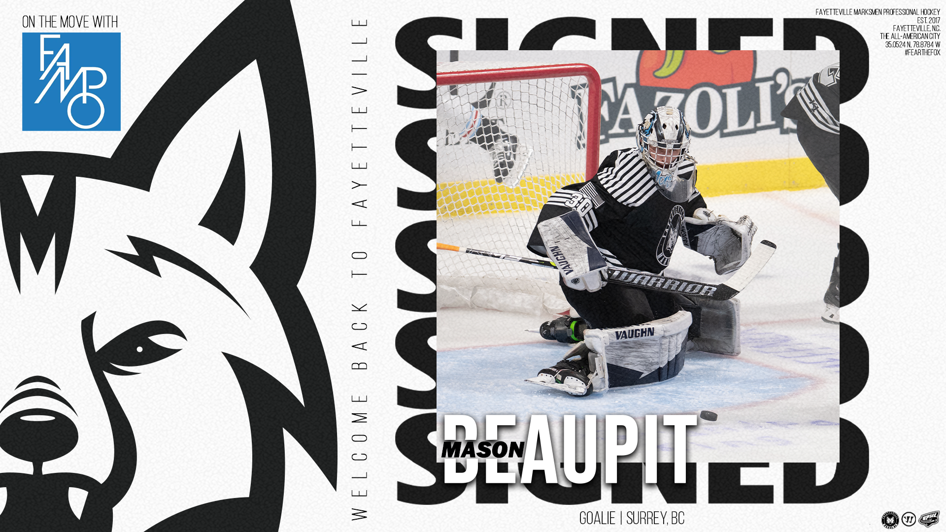 FAYETTEVILLE, N.C. –The Fayetteville Marksmen, proud members of the SPHL, are pleased to announce the signing of goaltender Mason Beaupit for the 2025-26 season.