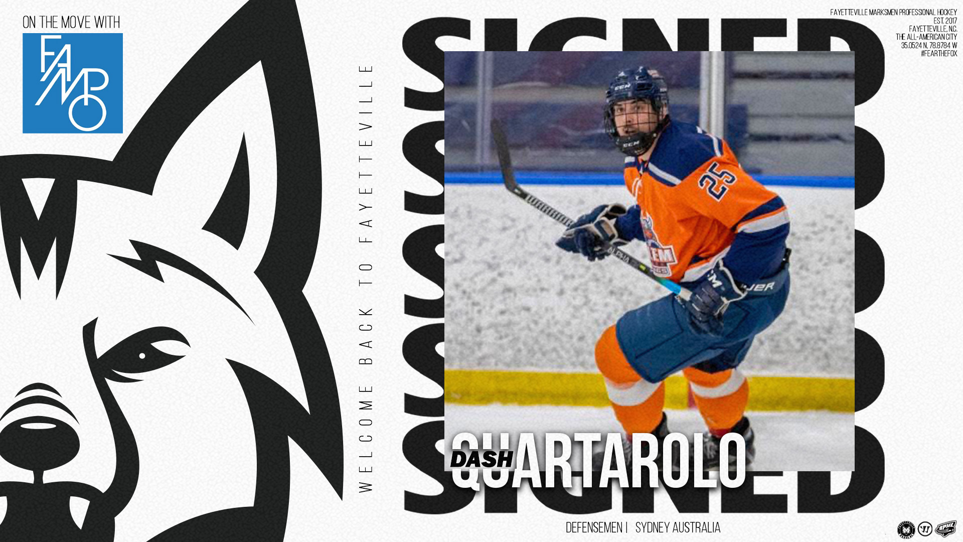 FAYETTEVILLE, N.C. – The Fayetteville Marksmen, proud members of the SPHL, announced Wednesday the signing of defenseman Dash Quartarolo.