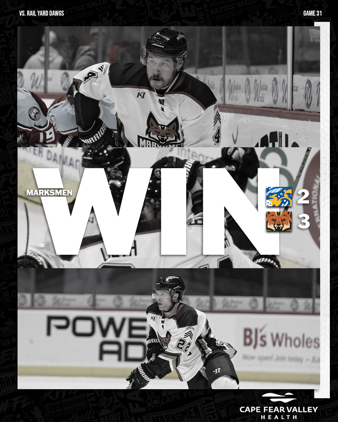 ROANOKE, Va. – The Fayetteville Marksmen, proud members of the SPHL, defeated the Roanoke Rail Yard Dawgs 3-2 on Saturday night.
