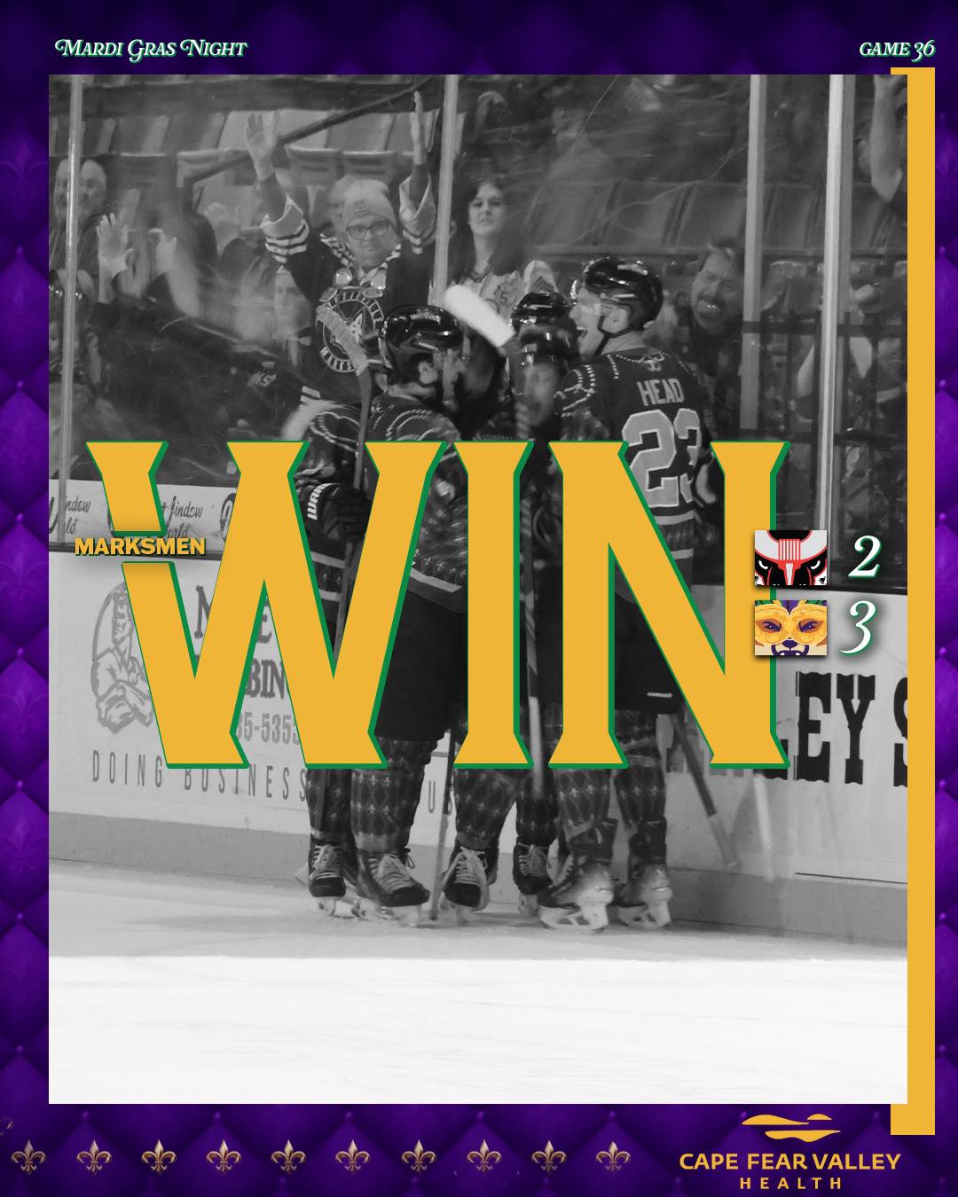 FAYETTEVILLE, N.C. – The Fayetteville Marksmen, proud members of the SPHL, defeated the Birmingham Bulls 3-2 on Friday night.