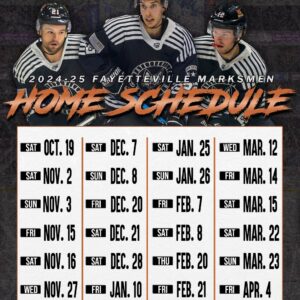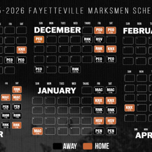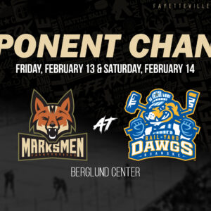 HUNTERSVILLE, N.C. – The SPHL has announced a schedule change affecting Fayetteville Marksmen road games in February 2026. Fayetteville will now play in Roanoke against the Rail Yard Dawgs Friday, February 13 and Saturday, February 14. The Marksmen were initially set to play the Knoxville Ice Bears in Knoxville. Don’t miss Opening Night presented by Jaggers, Saturday, October 18 at…